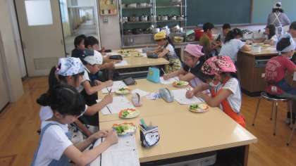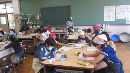 調理実習の振り返りをしています。