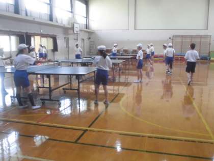 今年度,初めての卓球部の活動でした。部長・副部長を決めた後,今日は主に学年ごとに分かれて練習をしました。初めてラケットを握る4年生にってはまだまだ難しいのかもしれませんが,みんな打ち合いを楽しんでいたようです。中学生の先輩も見に来てくれました。