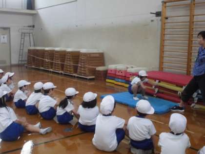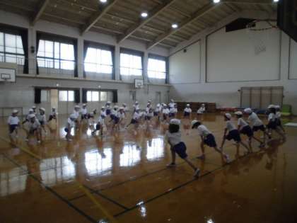 1・2年合同で体力テストの「立ち幅跳び」をしました。準備運動やお手本などを2年生がリードしてくれました。「手をふる」「前を見る」「ひざをまげる」などを意識して,しっかり跳ぶことができました。