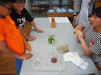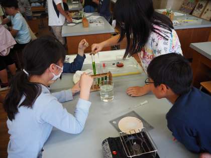 5月22日(水)6年生の理科の授業です。理科室で植物の葉で光合成がどのような状況で行われるかをヨウ素でんぷん反応を利用して調べます。実験から後片付けまでしっかりできました。実験結果からしっかり考察できる力が大切です。