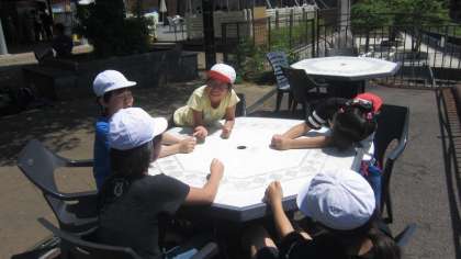 いろいろな動物を見たり,友だちとゲームをして休憩したりしている様子です。