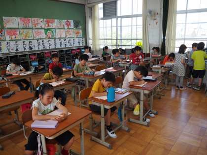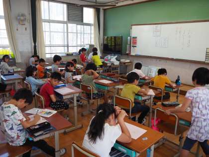 5月24日(金)3年生の国語は、作文です。お手紙を書く練習です。おともだちの良いところを見つけて文章にする練習です。