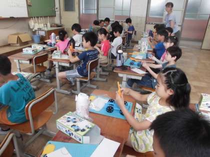 新しい勉強が始まりました。ゴムや風の力で物を動かす学習です。今日は,ゴムの力で車を走らせました。車を組み立ててから,体育館で走らせました。少しでも遠くまで走るように工夫しながら楽しく学習していました。何度も挑戦しているうちに,どうしたら遠くまで走らすことができるか,発見しているお友達がいました。