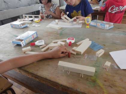 小さな木を組み立てて作品を作ります。金づちでくぎを打って組み立てています。初めて金づちを使うので,緊張していましたが,少しずつ大きな音で大胆にくぎを打つことができるようになりました。まだ途中ですが,どんな作品ができるのか楽しみです。