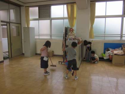 2年生になってはじまった特別教室の掃除です。低学年学習室を丁寧に掃除しています。