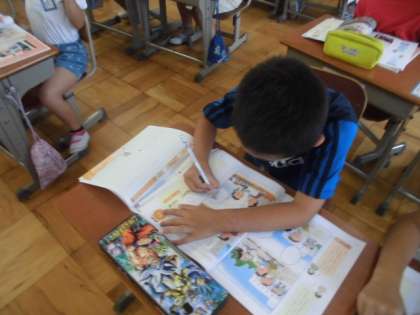 今日の学習のめあては「人が笑顔になる言葉を考えよう」でした。消しゴムを拾ってもらったときや,ぶつかったときなどの場面で考えました。実際にやってみると,「ありがとう」や「ごめん」と言われるとすっきりしたり,気持ちが良いことがわかったようでした。