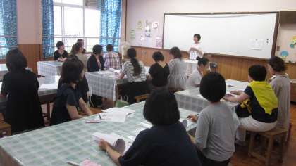 まず,栄養教諭から,給食ができるまでの話や調理室の話,子ども達の普段の様子の話がありました。