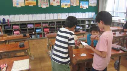 今日は雨が降ったので教室でトランプをして過ごしました。