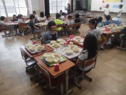 昨日(27日)は,4年生が3組と交流をしました。クラスの様子を聞いたり一緒にゲームをしたり,給食を一緒に食べたりしました。昼休みには,自分たちで声をかけて一緒に遊ぶ姿も見られました。