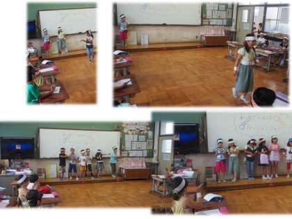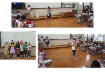 7月2日(火)4時間目に2年の教室からお誘いがありました。子どもたちが紙で作った冠やベルトを使ってファッションショーをするので見に来てくださいとのことでした。2年の子どもたちは自分たちで工夫して作った冠、ベルトを身に着け、教室をランウエイさながらにポーズを決めて歩いていきます。子どもたちの自分たちを表現することに一生懸命の姿を見ることができました。よく頑張りました。