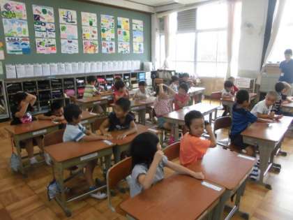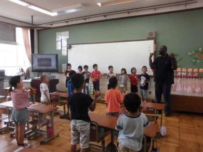 今年度,初めての外国語の学習がありました。ALTのテビン先生とはランチタイム交流で親しみを持っていましたが,学習を通してさらに大好きになったようでした。Hello Songやキーワードゲームを通して,英語を使ったあいさつに慣れ親しみました。授業の終わりには「え〜もう終わり?」「楽しかった〜!!」と笑顔の子どもたちでした。次の学習が楽しみです。