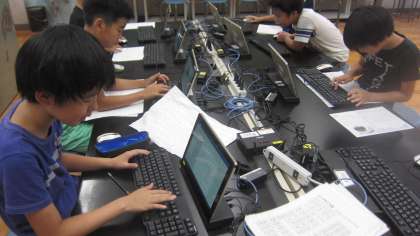 タブレットを使って調べたり,調べたことをまとめたりしている様子です。