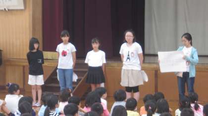児童朝会での発表の様子です。