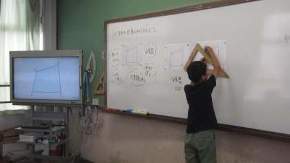 四角形の内角の和を調べています。