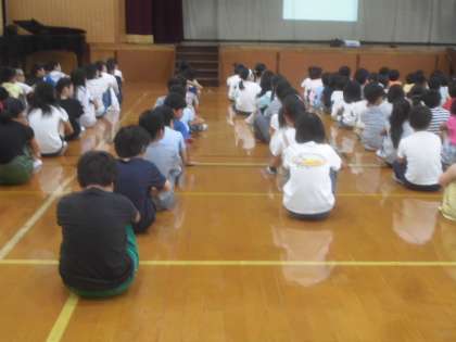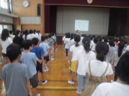 今朝は,7月の児童朝会でした。全校合唱「語り合おう」を歌ったり,6年生や飼育委員・図書委員・計画委員さんの発表を聞いたり,盛りだくさんでした。