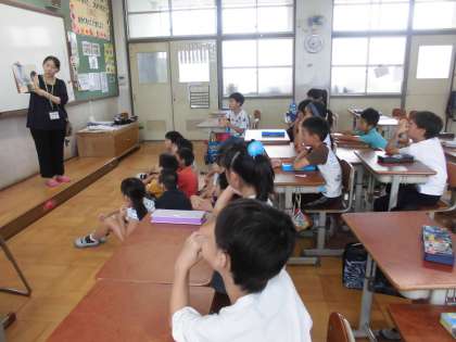 朝読書の時間にクラスの図書係のお友達が読み聞かせをしてくれています。また,別の日には,図書の米田先生が読み聞かせをしてくださっています。真剣な顔で聞き入っていました。