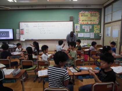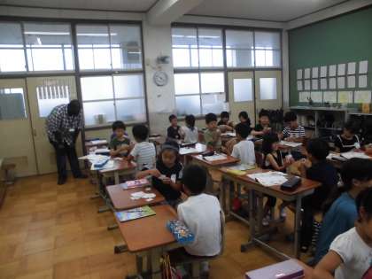 色のカードを使って新しいゲームをしました。ゲームの進め方をテビン先生と担任でデモンストレーションしました。できるだけ日本語を使わないで進め方を聞くと,「わかった。」「なんとなくわかった。やってみる!」と挑戦しました。ゲームを始めると英語を使って楽しんでいました。