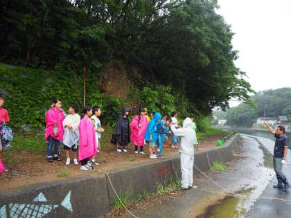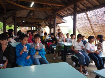 1日目浦山フォトラリーを終えて休憩,クラス写真を撮影した後、ジュースで一服。