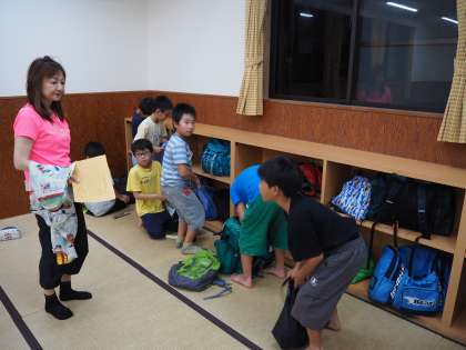 7月15日(月)みさきの家1日目が終わりました。最後に荷物整理、歯磨き、そしておうちの方へ、みんなでおやすみなさいです。明日も良い1日になりますように。