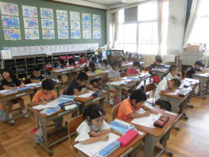 前回,ひききざん(1)のまとめとして問題づくりをしました。今日は,できた問題をみんなの前で出題しました。答える方は,問題を聞いて,頭の中で図・式・答えを考えます。いろいろな問題があり,楽しく復習することができました。最後は,復習プリントにも取り組みました。