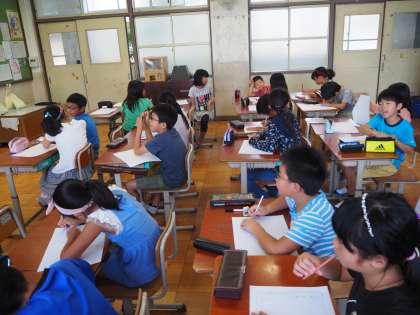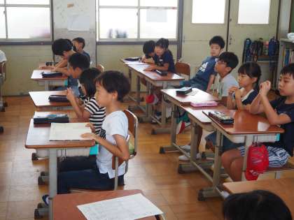 8月26日(月)始業式が終わり、いよいよ教室での授業です。3年生は、夏休みの宿題の発表会、そして4年は夏休みの思い出を作文にしています。