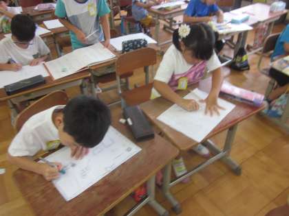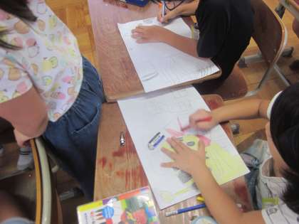 お話の絵の学習を始めました。今日はお話を聞いて想像を広げ描きたい場面を決めました。そして下描きをしました。
