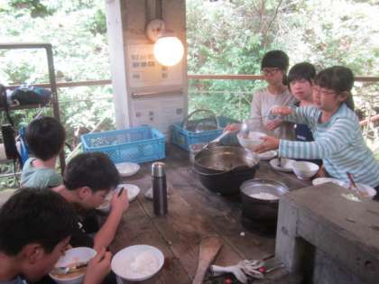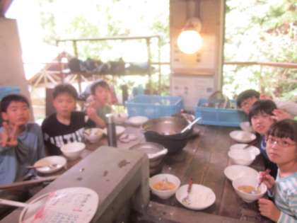 9月4日(水)自分たちで作ったごはんの味は、格別のようです。野外炊飯も2回目になるとかまどでの火のおこしかたも慣れてきたものです。