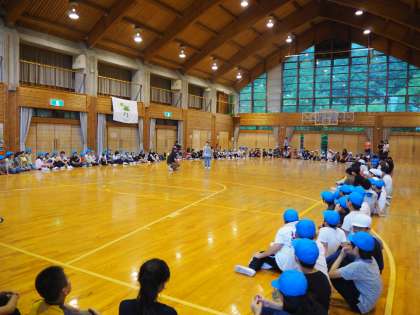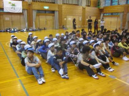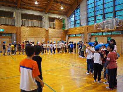 あ9月4日(火)3日目午後のプログラムです。朱雀第二小、朱雀第六小、朱雀第八小の3校合同プログラムです。いずれ中学校で顔を合わせる仲間として、ここで新しい出会いの場を作ります。それぞれの小学校を4つのグループに分け、それぞれのグループを合わせて新しいグループを作り、一緒にゲームをしたりします。将来ともに学ぶ仲間として頑張ってほしいと思います。