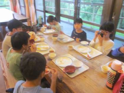 9月4日(水)3日目の夕食の様子です。ここまで来ると食堂での夕食の段取りもみんな慣れてきたものです。