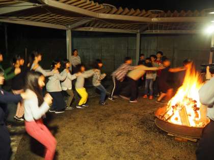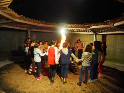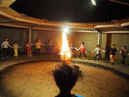 w9月4日(水)3日目の最後のプログラムです。みんな楽しみにしていたキャンプファイヤーです。レクレーション係の子どもたちを中心にこの日のために演出やゲームを考えてきました。わずか1時間ほどでしたが、子どもたちは一生懸命この時間を楽しんでいました。もうこの仲間で同じ火を見つめて、一緒に何かをするということは朱六校ではこれが最後になりますから。