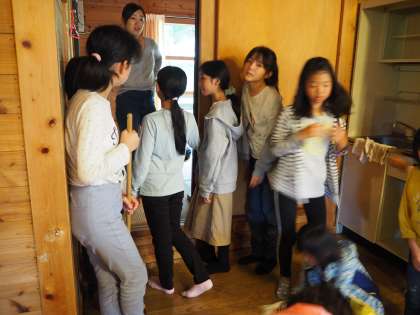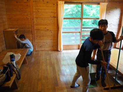 使った宿舎に感謝の気持ちも込め、「来た時よりも美しく」をモットーに、掃除をします。