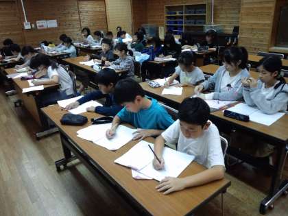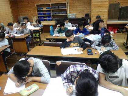 花背山の家での活動も予定通りに終え,最後の振り返りをしています。