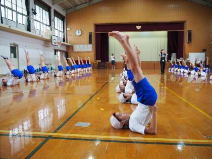 5・6年生の組体操の練習です。