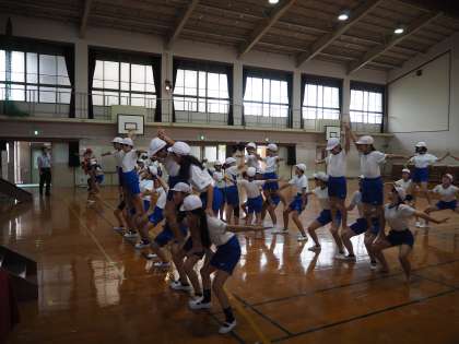 9月24日(火)5年生と6年生が運動会での組体操の練習をしています。いつもながらそろってくるときれいです。そして大きな技が決まると、拍手がなり、みんなうれしそうです。
