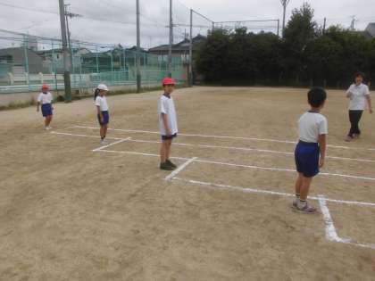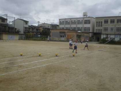 棒引きの練習は一旦お休み,3・4年生は,今日からバラエティ走の練習です。今日のところは,「ついて くぐって ぴょん ぴょん」とハードル2台を跳びましたが,明日は「ぴょん ぴょん ぴょん」となるように,3年生はゴムひもを1本,4年生はハードルを1台増やして跳ぶ予定です。