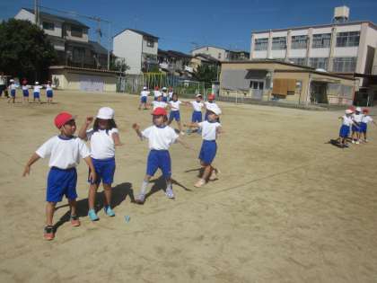 YMCAの練習をしました。運動場で昨日よりも上手に動けるようになりました。