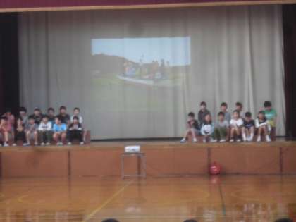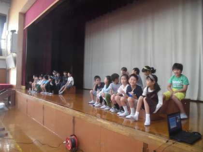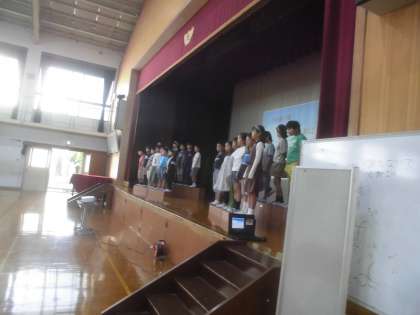今朝は,朱六タイムで四年生の発表でした。夏休み前に行った「みさきの家」での思い出について発表しました。みんなしっかりと大きな声で伝えることができたと思います。たくさんの保護者の方にも見に来ていただき,ありがとうございました。