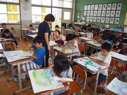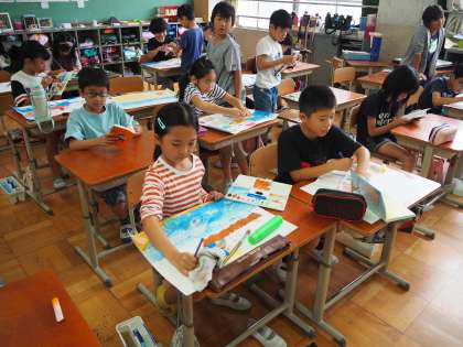 9月27日(金)1時間目3年生と4年生とも図工の時間でした。ともにテーマは「お話しを絵にしよう」です。子どもたちの感性が広がります。