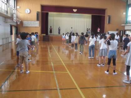 中間休みには,高学年を対象に全校ダンス練習がありました。初めてでしたが,5・6年生の係の人を見ながら,体を動かすことができていたと思います。運動会までには,しっかり覚えてくれると思います。