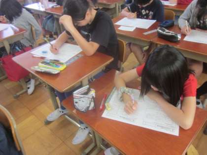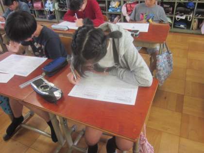 プリントを使って単元の復習をしています。