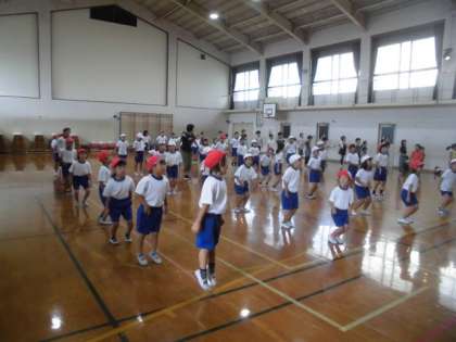 中間休みに低学年だけで全校ダンスの練習をしました。「パプリカ」の曲に合わせ,上手に踊れていました。準備運動の意味もあるので,当日もしっかり踊ってほしいと思います。