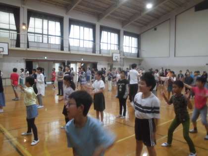 中間休み,2回目の全校ダンスの練習がありました。子どもたちは覚えるのが早いです。みんな上手に踊れるようになっています。台風の動きが気にはなりますが,本番では準備運動もかねて,しっかりと体を動かしてほしいと思います。