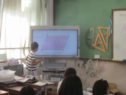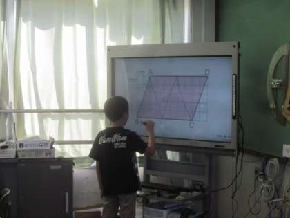 自分が考えた平行四辺形の面積の求め方を説明しています。