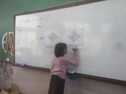 自分の考えを発表しています。