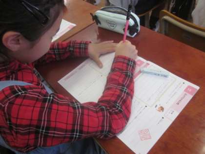 自分の考えをノートに書いています。