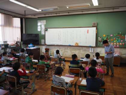 10月23日(水)の1年生のようすです。国語の授業では読書感想文の書き方について学びます。「こころにのこったこと」「じぶんなんらどうする?」「いまどんなことをかんがえているか」など、感想文を書くときのポイントを示して、感想文を書くように伝えます。