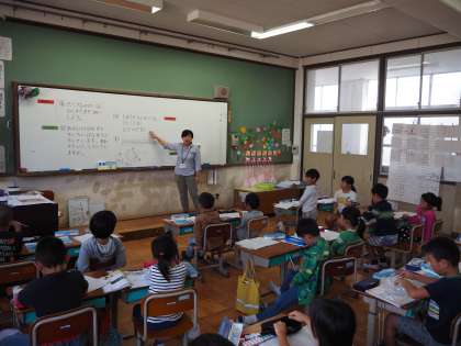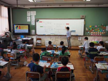 算数の授業では繰り上がりのたし算の仕方を考えます。計算の考え方を子どもたちが発表しそれぞれの方法を先生が丁寧確かめて、伝えていきます。