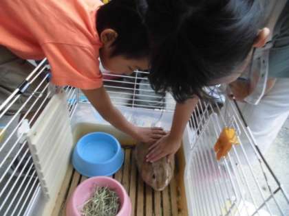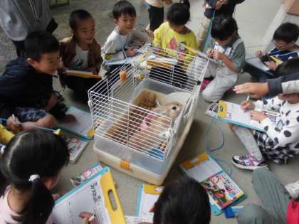 モモちゃんと仲良くなるために・・・まずは,じっくり観察しました。毛の色,えさの種類,動きなどたくさん知れました。