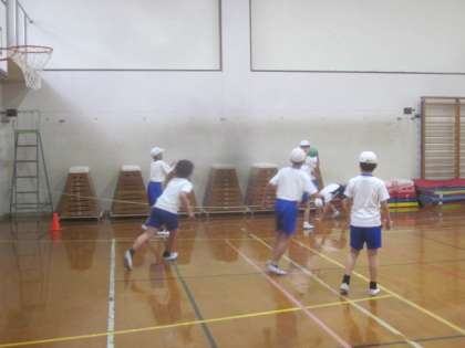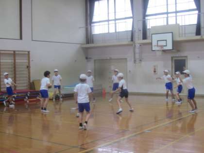 今日は雨でグラウンドが使えなかったので体育館でパスゲームをしました。