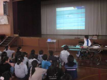 泳いでる映像を見ている様子です。